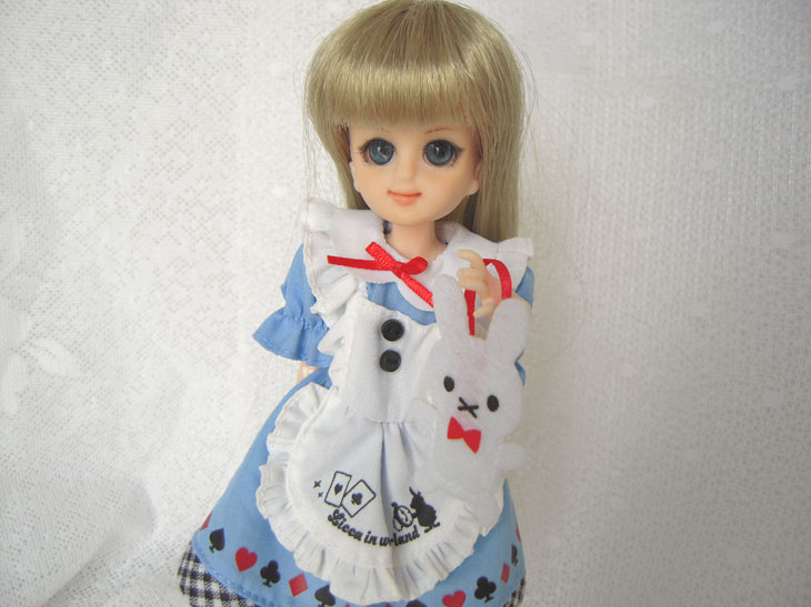 襟はちょっとフェルトっぽい?違う素材。着せ替えしやすくする為か、ワンピとエプロンは一体型でした。