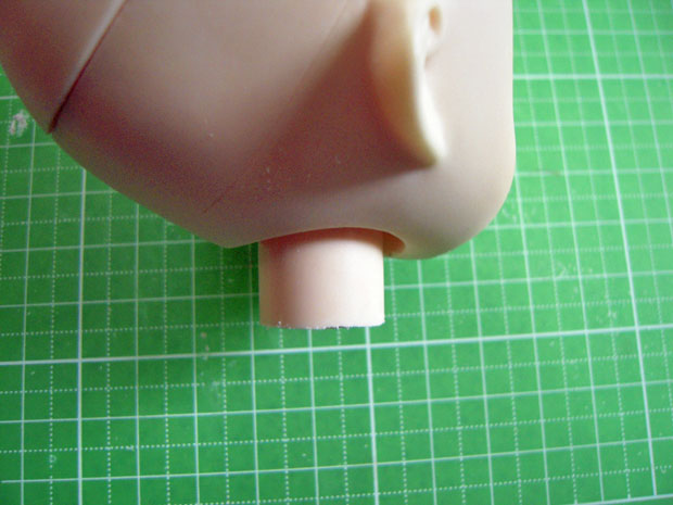 デザインナイフでぐるりと一周。首をはめて見えない程度の長さで。